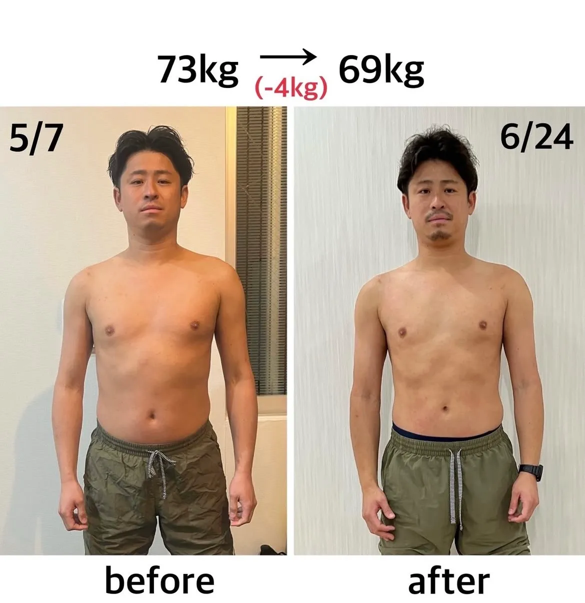 それぞれの目標や目的によってペースは調整していますが、だいたい1週間に1回のペースで3ヶ月程受けていただくと周りから気付かれるレベルの効果が出てくることが多いです。